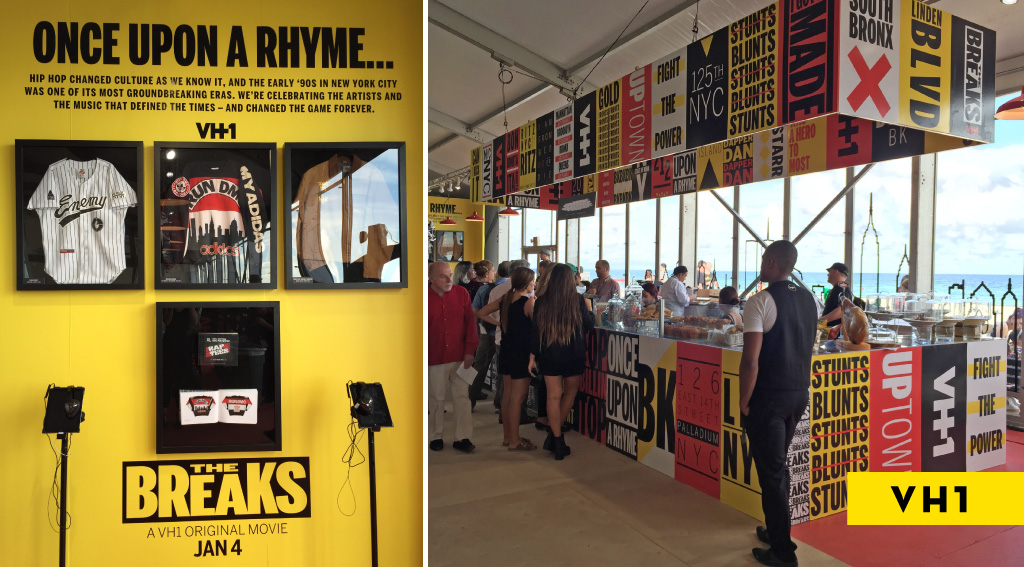 When first entering Scope Miami Beach, we encountered an urban VH1 lounge and cafe promoting a new hip-hop themed movie set to open in January. With the Atlantic as its backdrop, the cafe becomes an experiential billboard for the film and the television channel, inviting audiences to interact with the brand via food, drinks, and live music. Scope provides an ideal platform to promote the film to target markets.