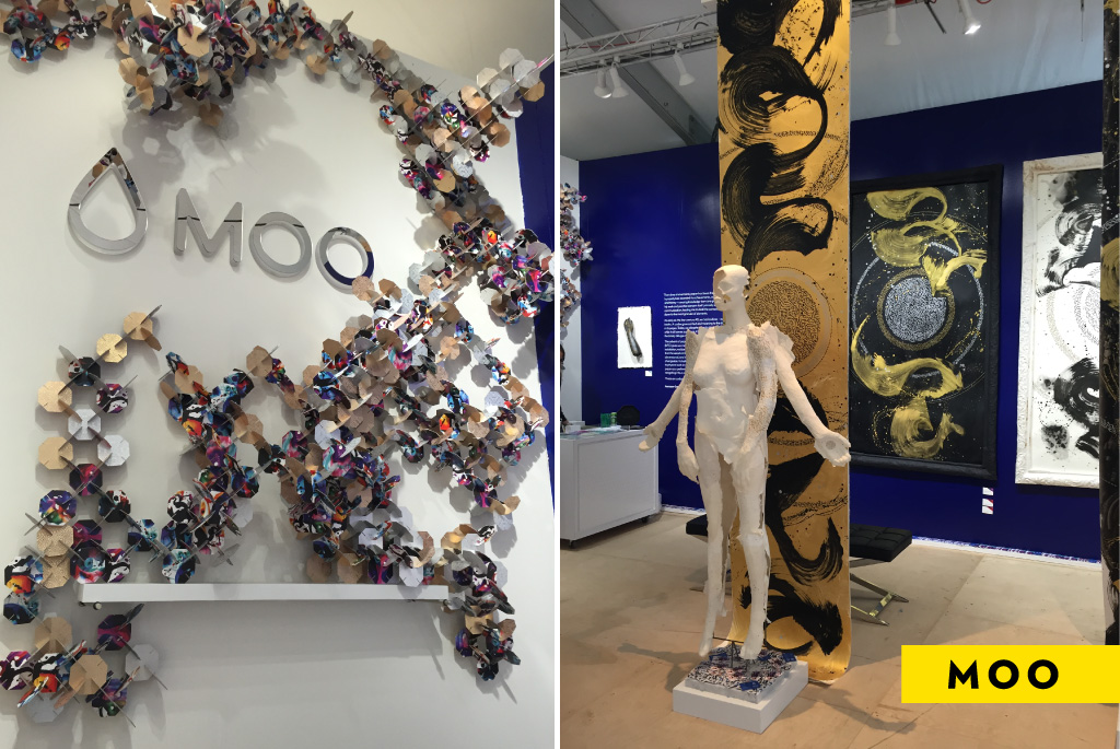 As we weaved our way through the art fair, we discovered another company-run on-site activation, “Paper View.” Created by the online paper goods printer, MOO, “Paper View” aims to expand the way people think of paper as a medium by showcasing artists who embrace the inherent power of the seemingly commonplace two dimensional medium. This year, MOO partnered with artist Aerosyn-Lex Mestrovic, whose art focuses on connections between the digital and tangible worlds. Through their collaboration with Scope and Mestrovic, MOO successfully links their brand to the fine art community while bridging the gap between handcrafted, paper-based works and digital technology. MOO clearly understands the importance of associating their brand with creativity and self expression while staying in tune with the voice of their audience, which keeps their product top of mind with potential consumers.