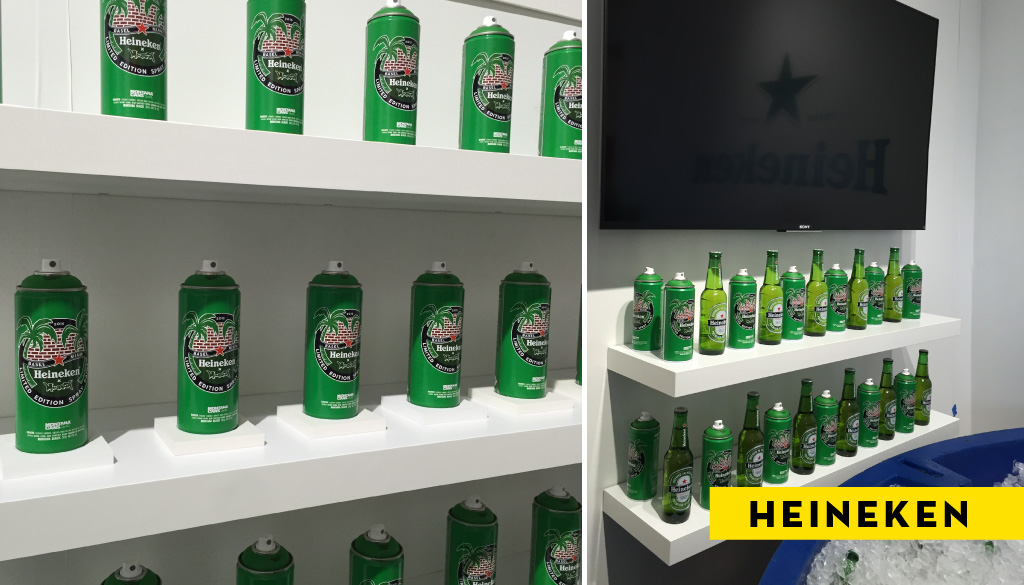 Our final first-day engagement with brands affecting space and consumers was with Heineken. While Heineken has long been a staple at Scope with the Heineken House, the company is taking this activation one step further in 2015 with their mobile art lab. Not only does the company have gallery space and branded work on-site at Scope, but they are traveling throughout the heart of Miami’s mural district, Wynwood, as well as select areas of Miami Beach, ensuring artists creating outdoor murals are equipped with the necessary supplies. In addition, the art lab acts as a mobile mural with rotating canvases and artists creating work live.